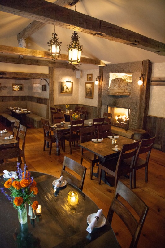 The beams crisscrossing the room and all salvaged from a 200 year old barn in Pennsylvannia.