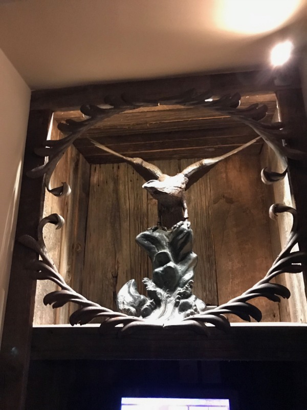 The magnificent reclining Lion mounted over the granite fireplace is over 200 years old and from the Borgia Palace in Rome, he bears the Borgia Museum seal.