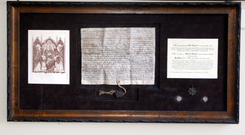 1250 Land grant from John Ingeram to his son & heir John. With his Wax Seal, intact, of a Running Dog. Written in Latin, this unique piece was possibly created, prior to his departure for the Crusades. 400 years later Ingerams’ ancestors were the first to settle Virginia in the New World. 12th.c. Extremely rare Medieval Knight’s Horse Harness pendant of Thomas Becket. King Henry 111 - 1250 - Two Silver Long Cross coins - discovered in a treasure chest in 1908 Belgium - part of a trove of silver coins worth a Kings Ransom - possibly to be used for political bribes by Richard of Cornwall, King Henrys’ younger brother, in his bid to be elected Holy Roman Emperor - he was successful, even though the treasure never reached its destination, as Brussels was in the midst of a civil uproar and it became too dangerous to travel any further with these millions, the treasure chest was secretly buried under a cistern in a tavern, until an accidental discovery almost 700 years later. 1793 Illustration of the 1216 Coronation of King Henry 111 (by Strutt)