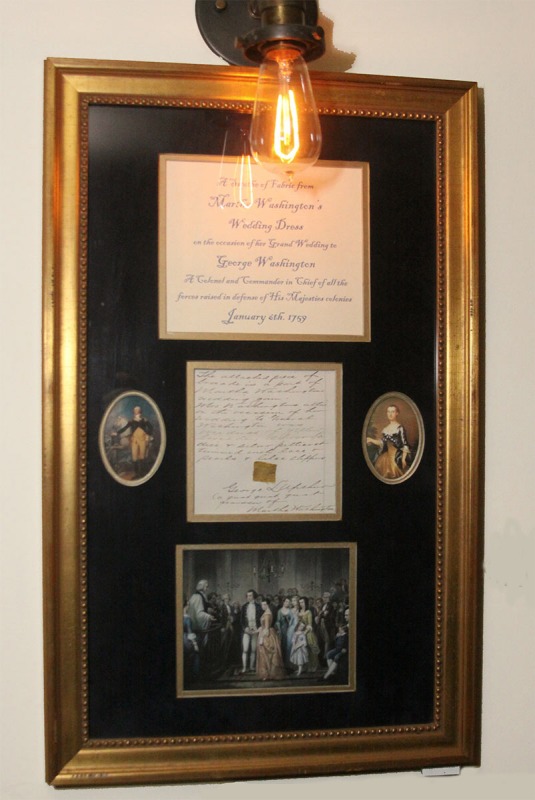 Swatch of Martha Washington's Wedding Dress from her marriage to Colonel George Washington January 6th.1759. This fragment is of a Rich Gold Brocade material and is attached to a letter written by George L. Upshur, her Great Great Great Grandson in 1915 to his girlfriend, proposing marriage - She said yes and carefully preserved this important artifact. - Upshur's Mother was the Grandneice of George Washington Parke Custis - The Grandson of Martha Washington - through her first marriage to Daniel Parke Custis - from the note by Upshur "Mrs Washington's attire on the occasion of her wedding to General Washington was overdress of yellow brocade, silver bodice & silver petticoat trimmed with lace pearls & lilac slippers." The marriage took place in New Kent County, Virginia at the White House Plantation. A replica of the yellow brocade wedding dress is on display at Mt. Vernon.