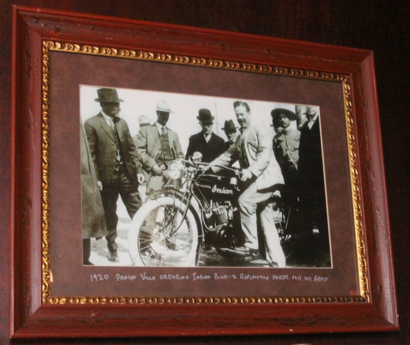 Behind the bar is an Indian Scout Motorcycle from 1920 - This was the first year of production for the bike that eventually evolved into the Chief. With revolutionary engineering, this bike was far ahead of its time. It became the obsession of Burt Munroe who eventually broke the land speed record at 200mph, after much tinkering.