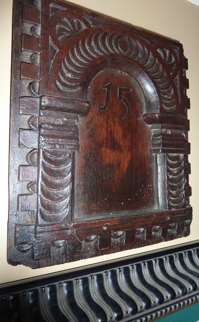 geometric shapes fashionable on furniture through the sixteenth century - old hard oak with ancient worm holes - I can only imagine the changing fashions and items those drawers have seen for over 400 years, and now it is a time to hold your menus ..