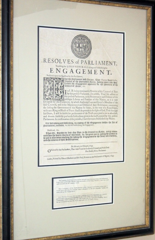 Lord Fairfax, as commander of the army, declaring loyalty to parliament, just after King Charles I was deposed, during the climax of the civil war. This broadside would have been placed in town squares and important taverns for all to read.